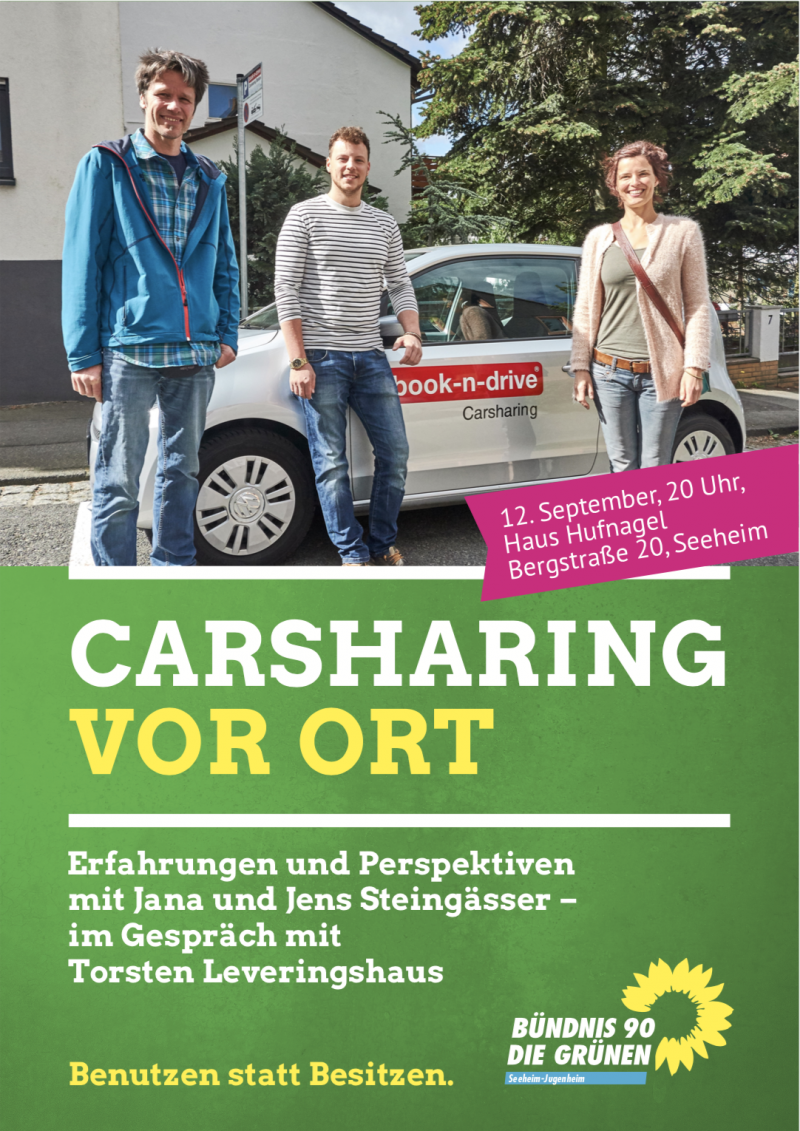 Der Carsharing-Anbieter book-n drive hat jetzt eine Station im Ortsteil Malchen in der Frankensteiner Straße oberhalb der Straßenbahnhaltestelle eingerichtet. Die Initiative dazu kam von Jana und Jens Steingässer. Das Journalistenpaar hat durch Weltreisen mit seinen vier Kindern auf den Spuren des Klimawandels in der Vergangenheit für Aufmerksamkeit gesorgt. Sie wollen dem Klimawandel durch ihr Verhalten auch vor Ort entgegen wirken. Über Carsharing im Allgemeinen und ihre persönlichen Erfahrungen damit berichten sie am 12. September um 20 Uhr im Haus Hufnagel in Seeheim-Jugenheim.
