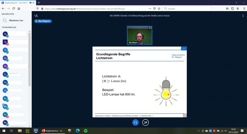 Mit 20 Teilnehmenden war unsere erste „GRÜNE STUNDE DIGITAL“ zum Thema LED ein voller Erfolg. Vielen Dank den interessierten Teilnehmer*innen, an unseren Referenten Dr. Max Wagner sowie an Torsten Leveringhaus, der sich um die technischen Voraussetzungen gekümmert hat.